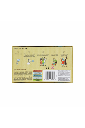 - Contents: Board game, 700 words, 350 cards, Instructions